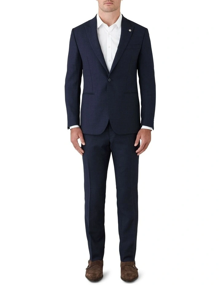 Waffle look weave trouser in a dark navy base. A versatile style designed to be worn both in the office with the matching jacket or your favourite Navy sports jacket.