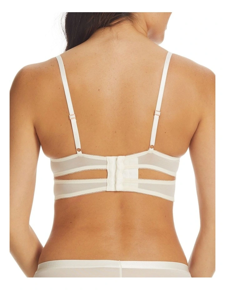 - Lace front and split panel back made from breathable stretch-mesh which is framed with loop elastic