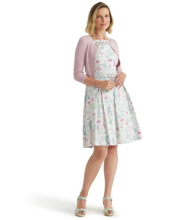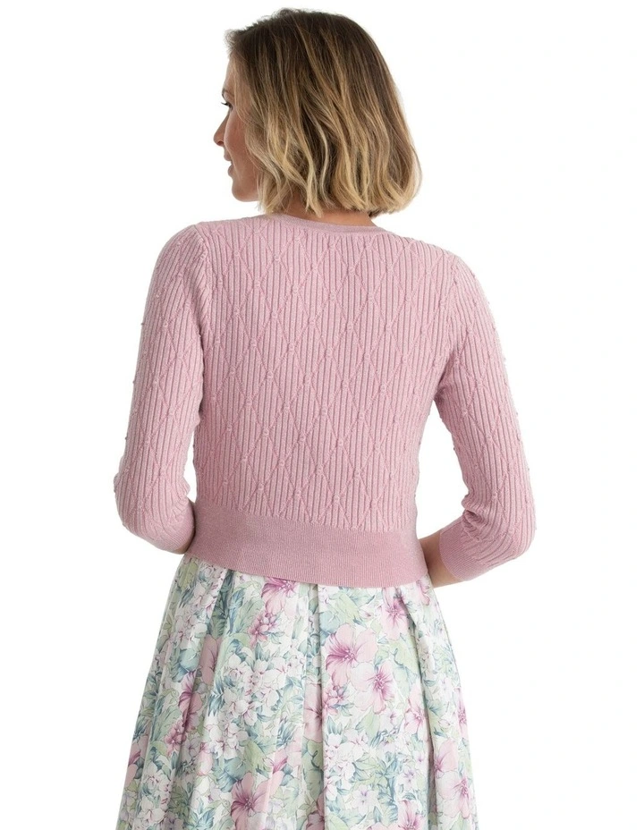 Get ready to shimmer and sparkle in the Haisley Shimmer Cardi. Featuring a button through front with a scoop neckline and a lovely diamond rib stitched pattern. With a premium fabrication that feels luxuriously soft against the skin, flattering slim fit and three quarter length sleeves this sweet little style will perfectly complete your next look.