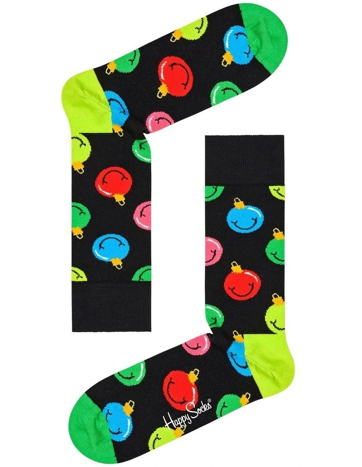 Festivity fans? Go for a colour carnival in these ”Big Dot disguised as baubles disguised as smileys” socks!Â