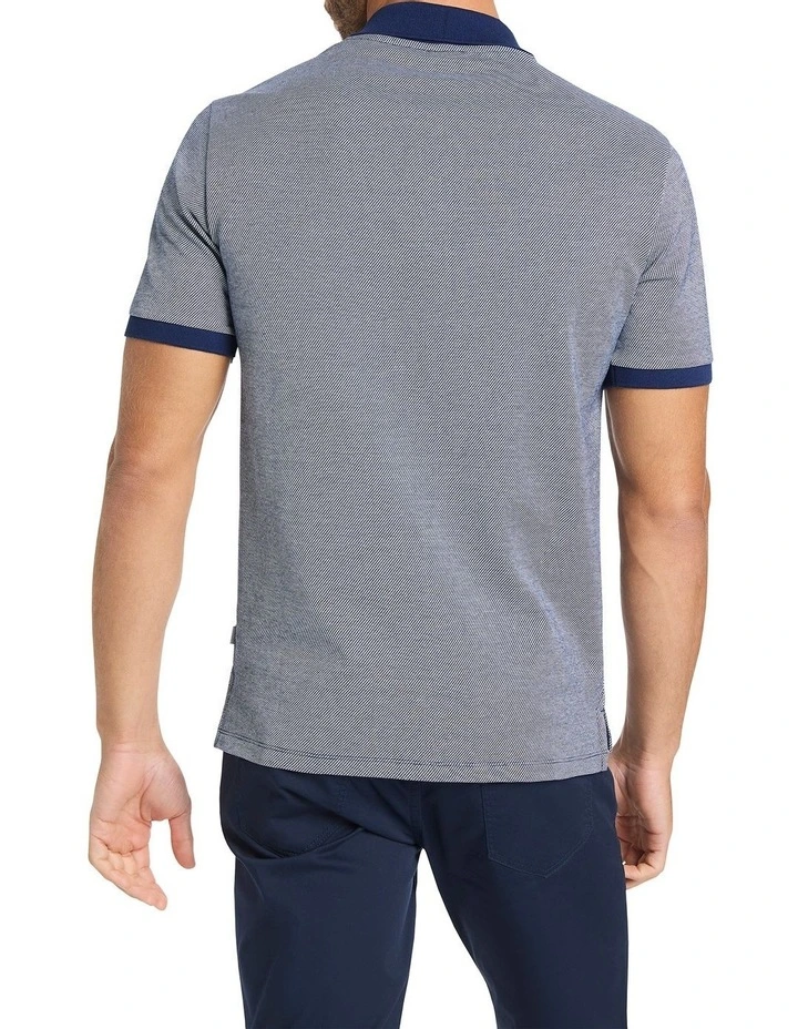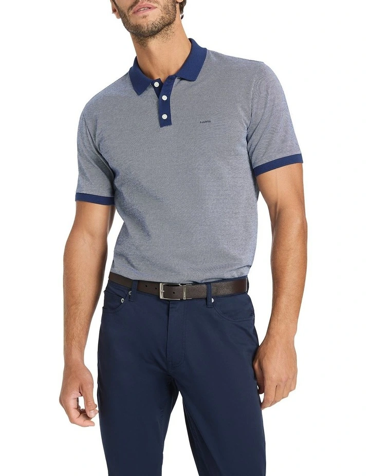 Soft and breathable in pure mercerised cotton, this polo accents classic polo styling with rich navy blue, completed by contrast detailing at the rib collar and cuffs. Offering a regular fit with neat short sleeves, the polo is further complemented by a contrast triple button closure at the neck, side seam splits at the hem, and an embroidered Marcs logo at the chest.