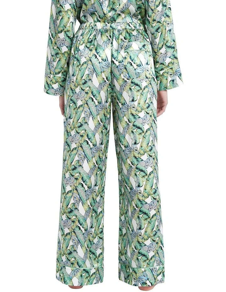 Luxuriously soft and simply perfect for sleep, these pyjama pants swirl and sway through pure silk, as they show off loose, relaxed shaping to full length. Revealing a delicate leaf print based in green, the pants are further complemented by a comfortable elasticated waistband, a drawstring front tie, a single patch pocket at the back, and green piped trim at the outer seam and cuff.