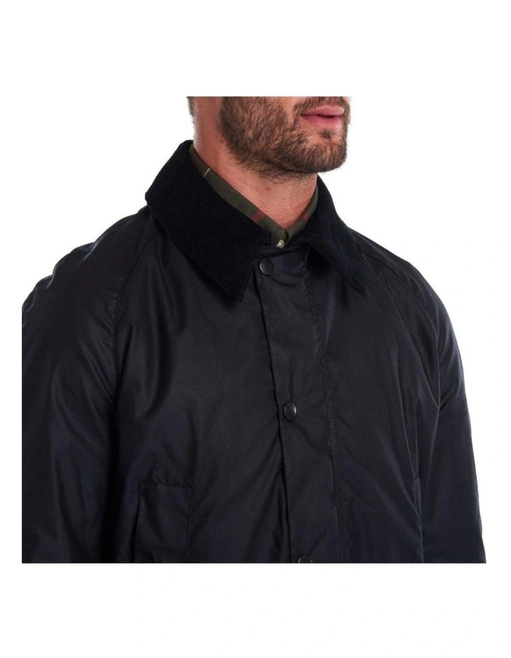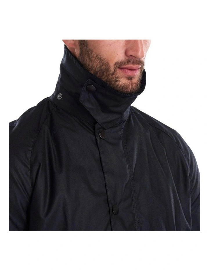 Constructed in Barbour’s signature 6oz Sylkoil waxed cotton, with a matte finish and a comfortable, lived-in feel. Slightly tailored, yet still allowing room for essential winter layering, classic features include a storm fly front with hardy stud fastenings, a smart sit-down cord collar with throat strap, angled handwarmer pockets and two generous bellow pockets.