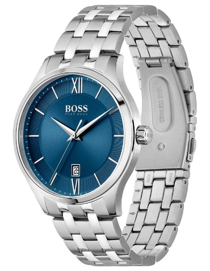 Achieving success is all about getting the details right. The BOSS Elite collection does this in style with a combination of meticulous design and classic elegance. The three-hand watch with date function features a sunray dial with CD texture on the outer ring, while discreet Roman numerals at 12 and 6 accompany polished stick indexes. The perfect timepiece for the man who dresses for success.