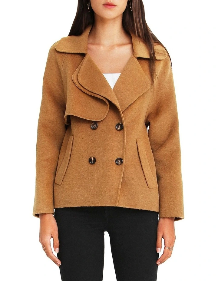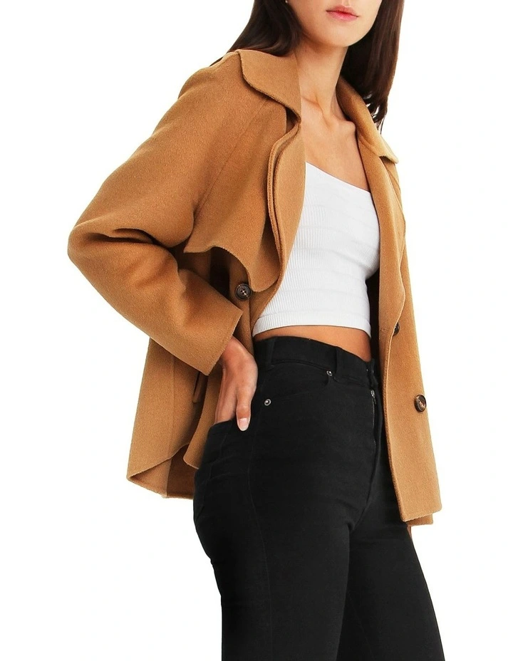 Keep it short with the Im Yours Wool Blend Peacoat with its oversized cropped outerwear look. Featuring an oversized collar and novelty buttons, this coat will still highlight your killer outfit underneath.