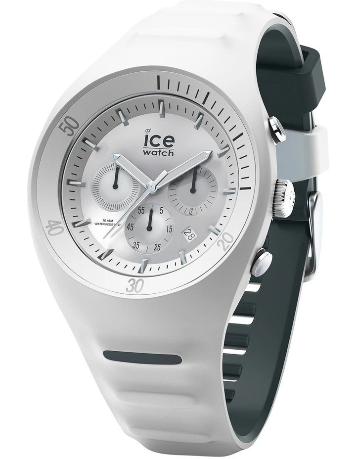 This large watch by Pierre Leclercq has a soft silicone strap that is white on the outside and grey on the inside. This simple, masculine model also has a chronograph and embossed hour markers. 100% waterproof, it can be worn on all occasions!