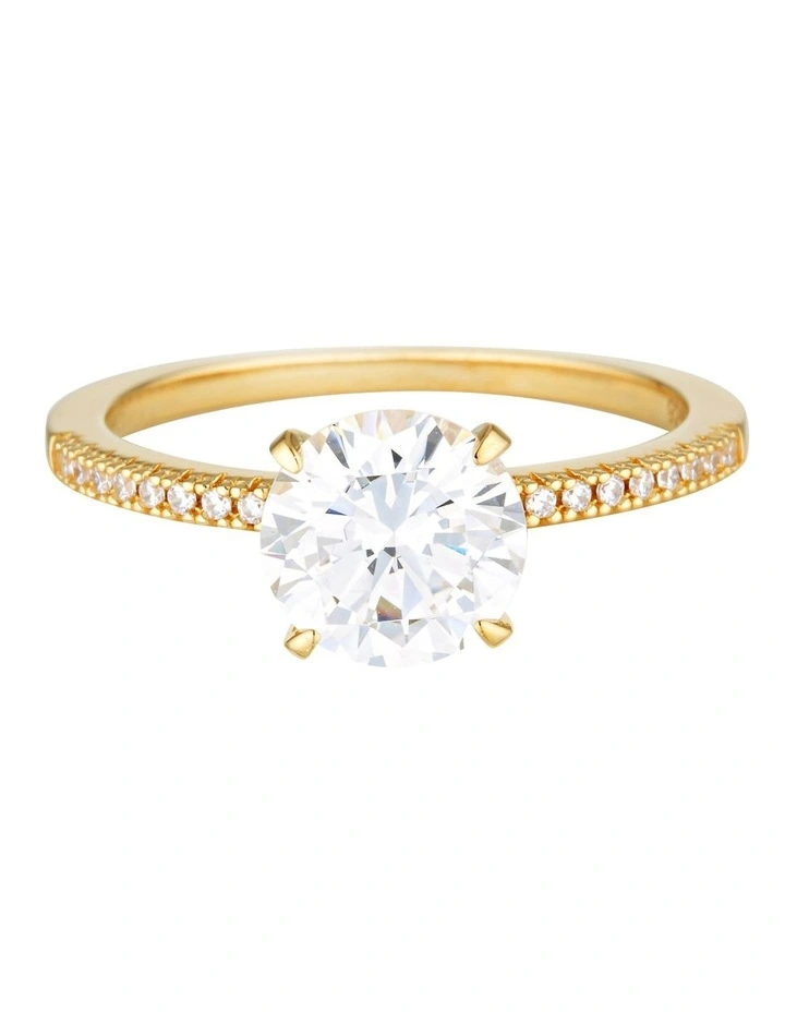 The Francesca ring by Georgini is the most delicate of creations. Featuring a Round Brilliant 2ct Cubic Zirconia that measures 8mm this stunning stone sits in a beautiful pave band. Pair it with the Anne band for the perfect set. Crafted in 18ct Gold plated 925 Sterling Silver.