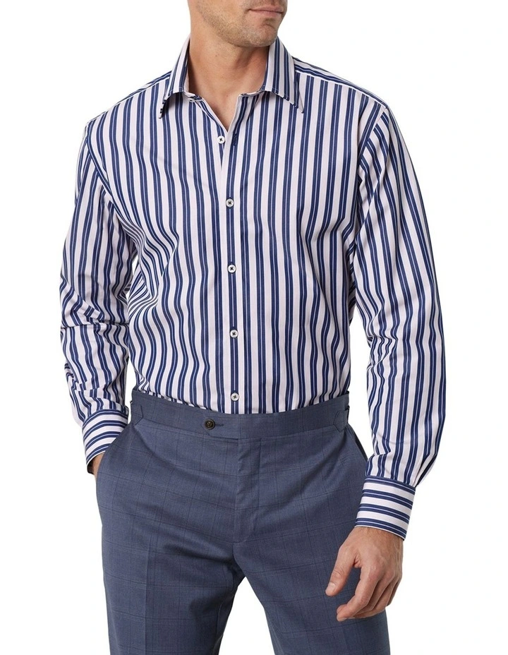 Add some strip to your life with our new Johnston Shirt. Crafted from 100% Cotton, it features a modern prince of wales check in a twill construction. It has a French seam on side seam, non-fused interlining for more comfort and can be worn up or down for a number of occasions.