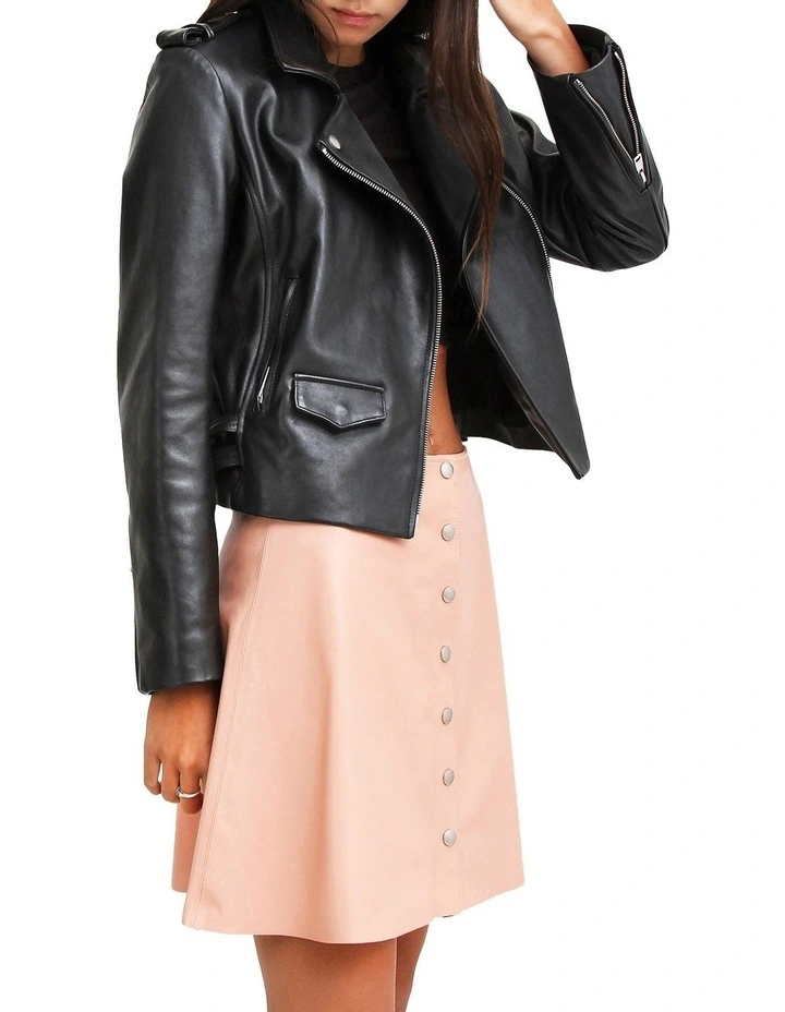 Bring an effortless luxe feel to any outfit with the Just Friends Leather Jacket by Belle & Bloom. A true wardrobe staple, this jacket is entirely crafted from genuine sheep leather and punctuated with silver-toned hardware. It features a zip-through front, notched lapels, zip-open cuffs and two zipped pockets.
