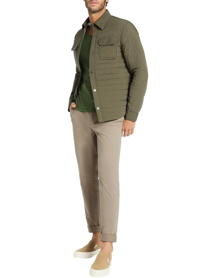 Creating a lightweight layer in gorgeous khaki green, this padded shacket effortlessly combines flattering shirt styling with the warmth of a jacket. Offering a regular fit with curved shaping at the hem, the jacket further draws the eye with Marcs logo metallic button detailing at the snap button front closure, neat button cuffs, and flap patch pockets at the chest.