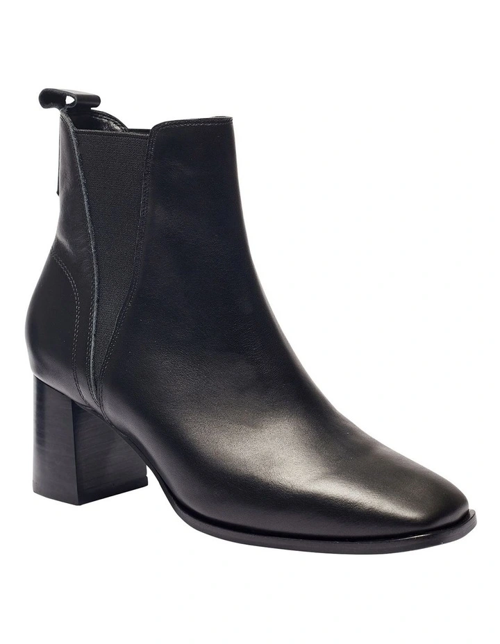 Tap into the minimalist yet polished look by wearing LACHLAN. The streamlined ankle silhouette is crafted with a leather upper to a squared toe profile, elasticated side gussets and a leather pull back tab, then finished on a sculptural block heel. Wear them with cropped trousers to highlight the clean-cut design.