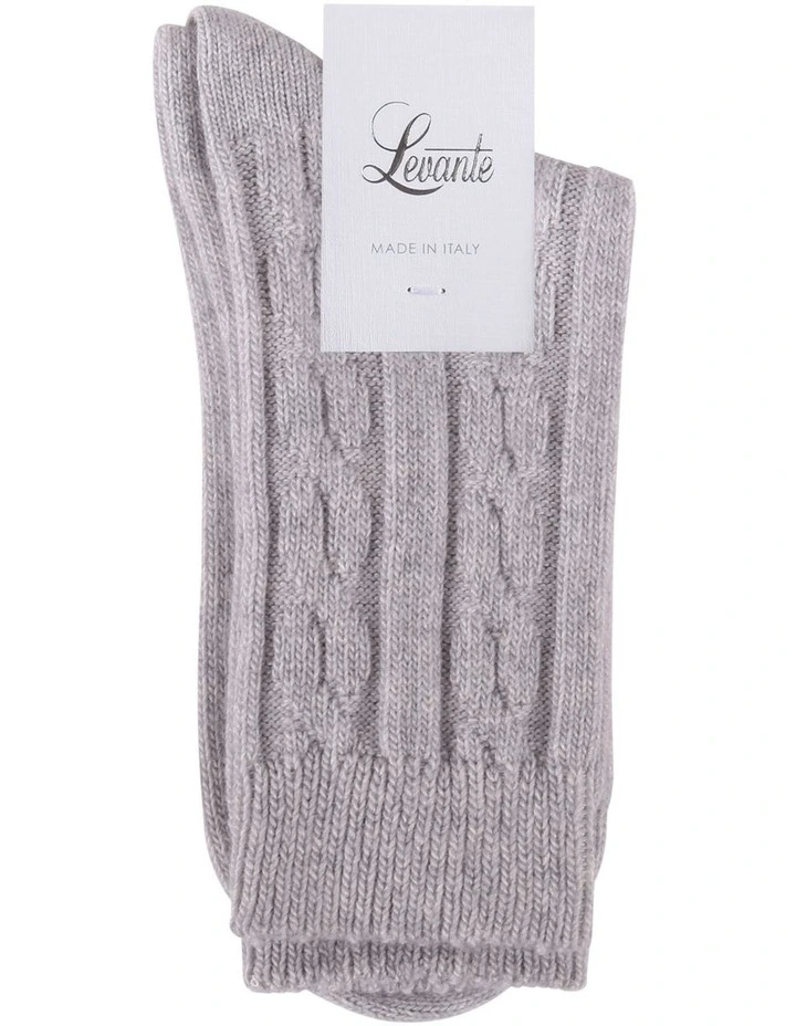 The Levante “Nina Cable Sock” is made from a luxuriously soft blend of Merino Wool, Viscose & Cashmere.