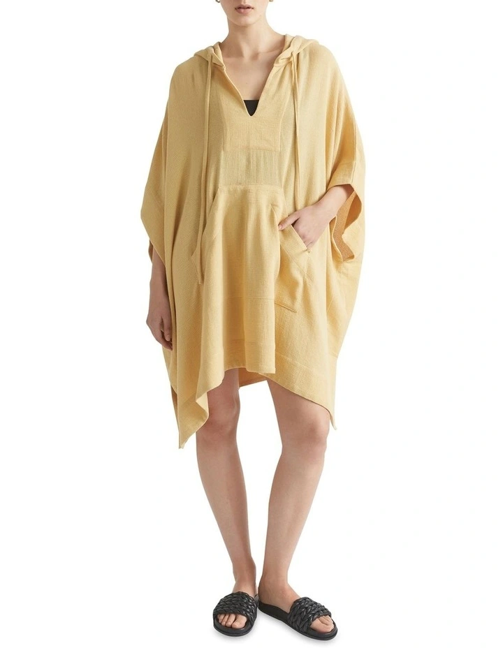 For a neutral addition to your transeasonal looks, layer up with this hooded poncho. Crafted from 100% cotton, the style features a front pocket and a draped fit.