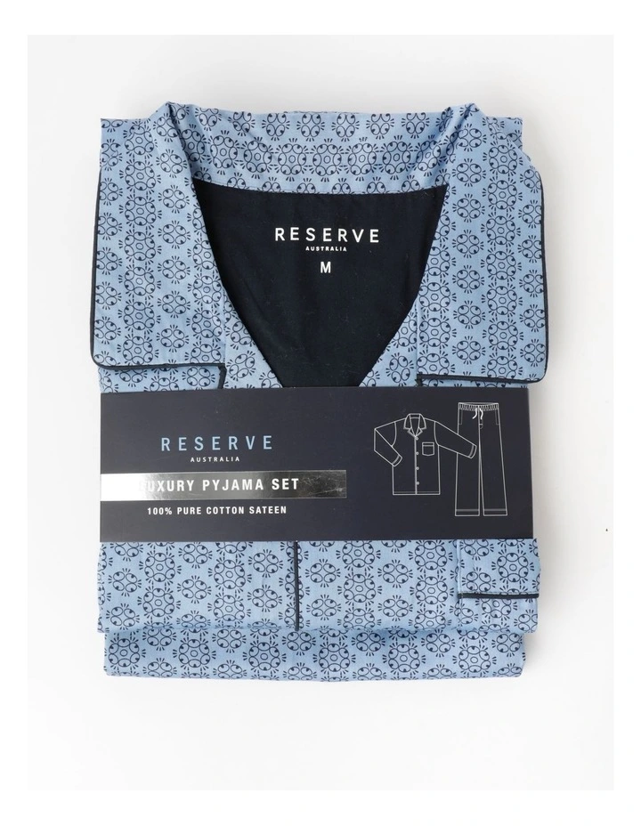 Reserve Long Sleeve Sateen Cotton PJ Set in Stripe Geo