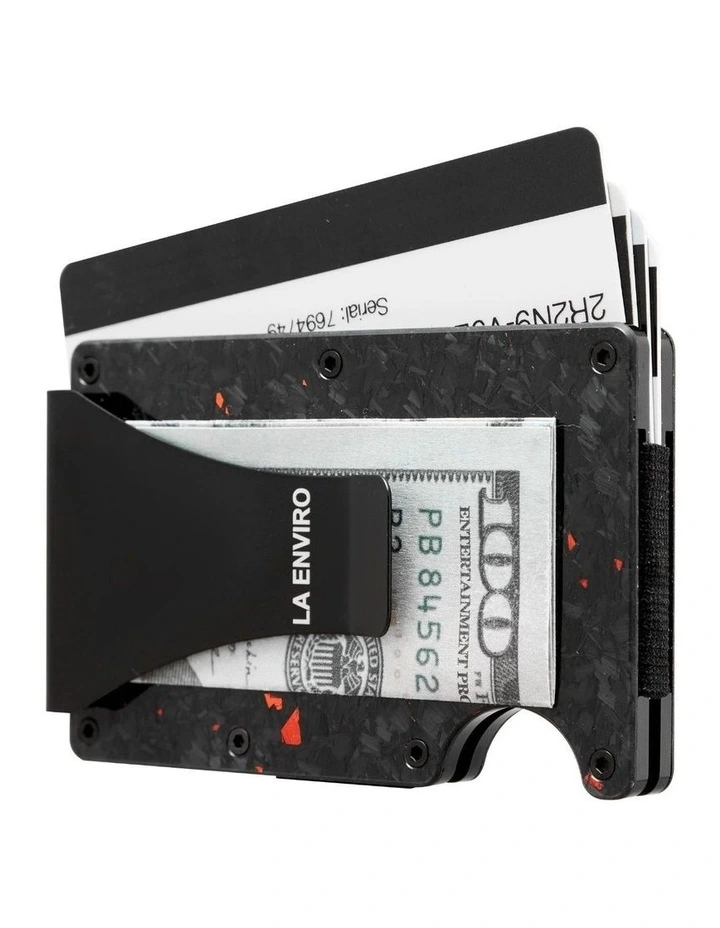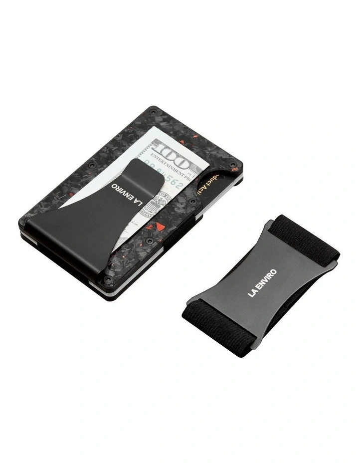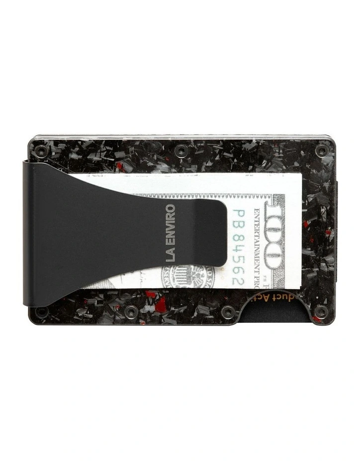 - Money clip: a traditional money clip made from spring steel. Ideal for cash, RFID-enabled cards, or business cards. Forged carbon fiber glossy finish