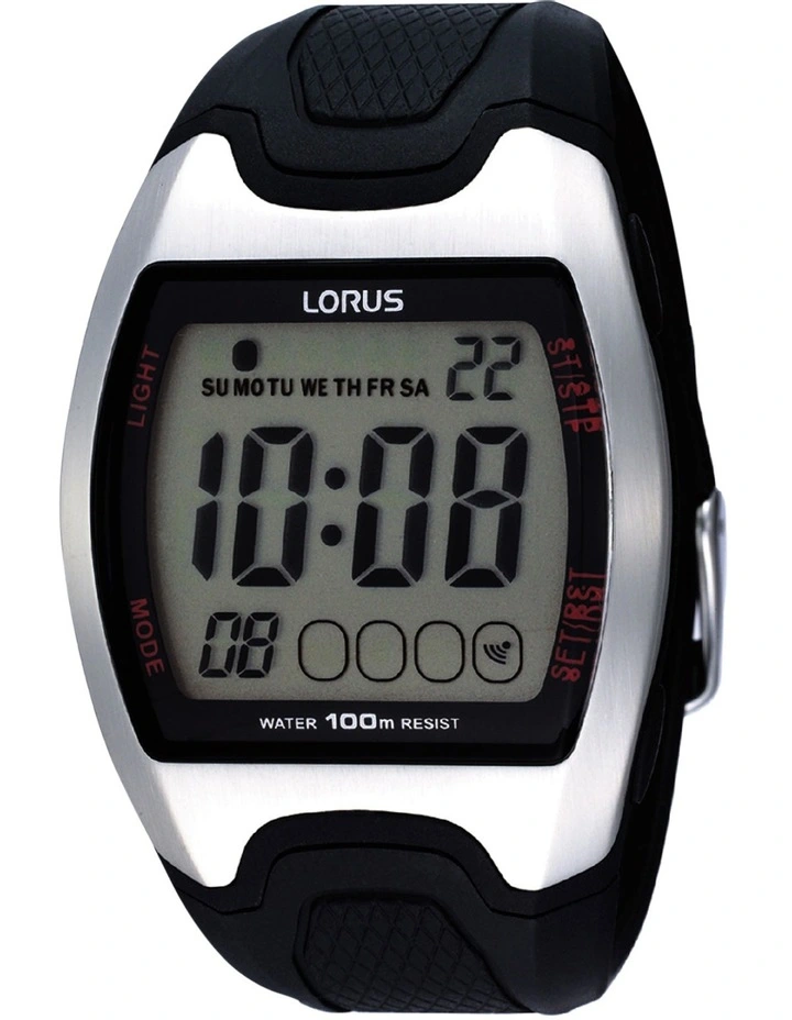 LORUS gents R2327CX-9 is an all-day 100m digital sportswatch thats suitable multiple activities whether thats running, gym, sportsor a swim.