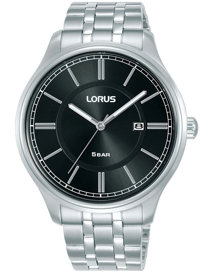 The Lorus RH947PX-9 is a classic looking all-day gents quartz watch featuring a black dial, stainless steel case and bracelet and mineral crystal glass. Features include, Stainless steel case and bracelet, Black dial, 50m water resistant, 42mm case size, Mineral crystal glass and Date display.