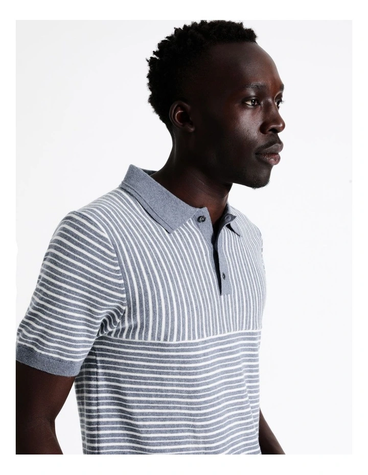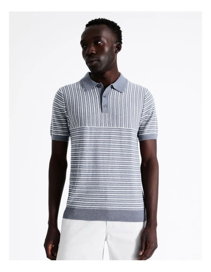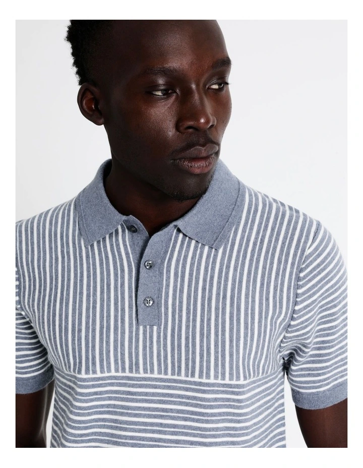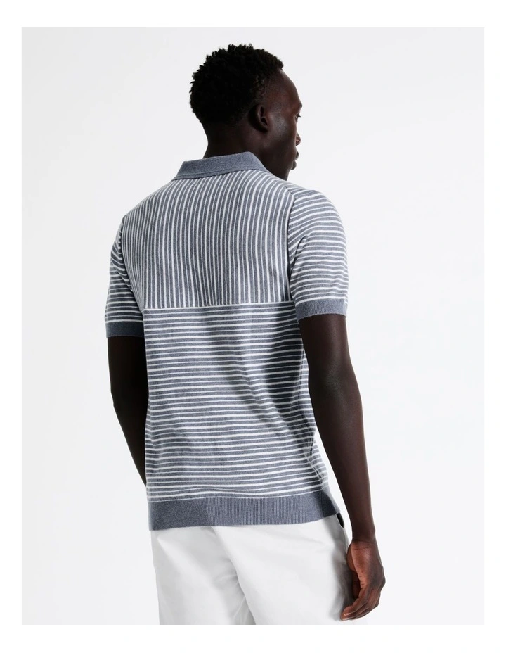 Blaq Matthew Stripe Knit Wool Blend Polo in Blue