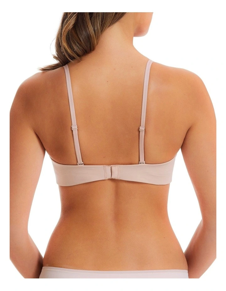 The uncovered non crease high stretch memory foam cups that retain their shape after washing. It has a lower, modern neckline shape. Underwire for support. Narrow laminated edge trim on neckline and underarm. Silicone Free. 4 row hook and eye for extra adjustment. Delicate silver brand logo