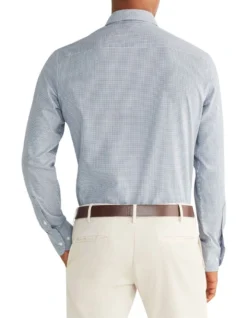 Van Heusen Slim Long Sleeve 1 Colour Dobby Check Shirt In Blue