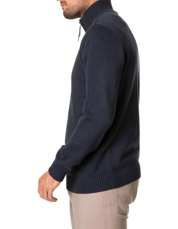 A quarter mock neck sweater, in a melange cotton. Combining the comfort and ease of cotton with a lightweight gauge ideal for layering over the colder months. Straightforward styling furthers versatility.