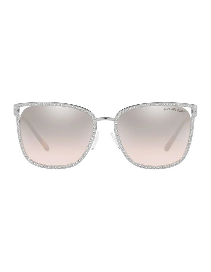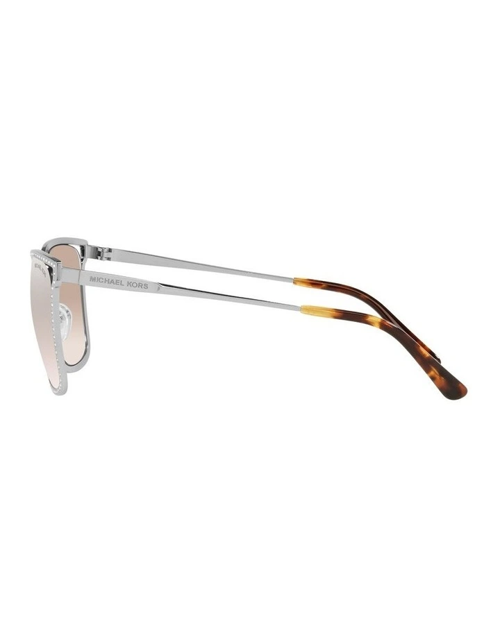 Pinnacle metal square adorned with crystals and feminine venting details. Metal temple with laser engraved logo. Universal fitting.