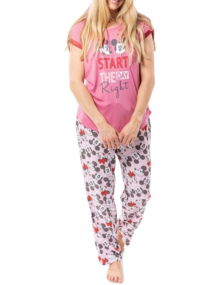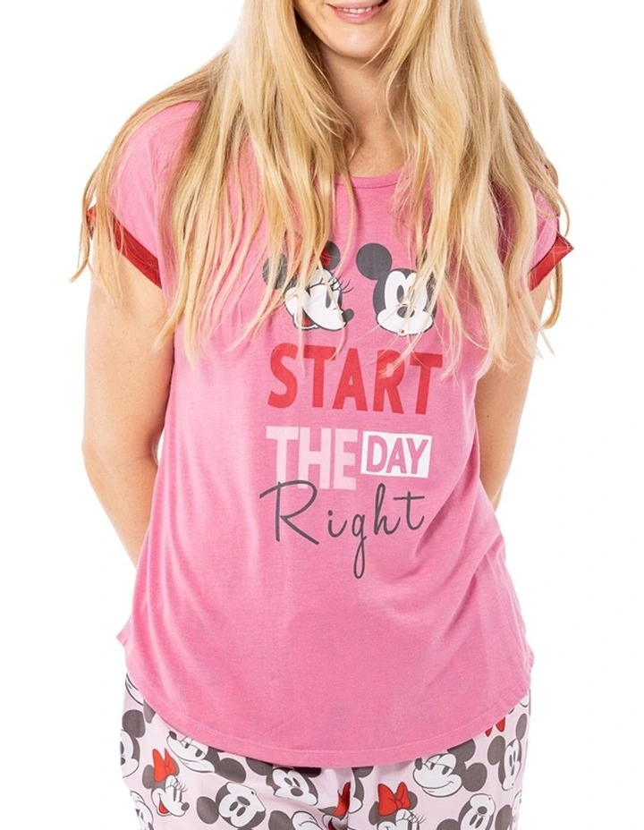 Get the magic of Disney in your wardrobe with this adorable Mickey Mouse Short Sleeve Sleep Tee in Pink. Featuring a Start The Day Right placement print, crafted from polyester and viscose. This Sleep Tee is great for any Mickey Mouse fan or for gift giving.