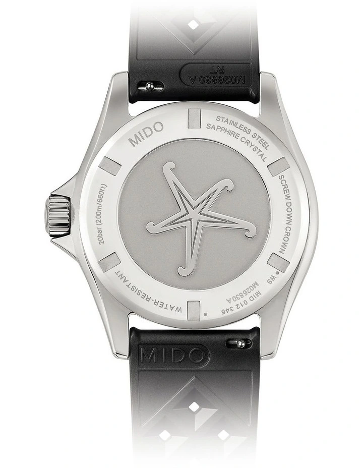Mido pays tribute to the Ocean Star collection. In subtle reference to the past, the Ocean Star Tribute Swiss watch reinterprets the aesthetic codes of the diving models from the 1960s. It is fitted with the Caliber 80 automatic movement with up to 80 hours of power reserve, is water-resistant up to a pressure of 20 bar (200 m/656 ft) and features a unique strap offering maximum comfort.