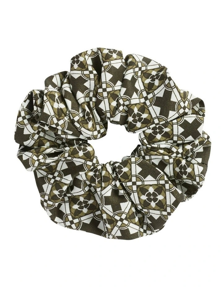 Tie your hair back in style with this geo-print scrunchie. Designed to match our apparel, it has an elastic interior and a print fabric outer.