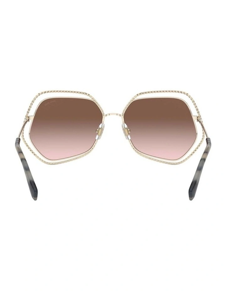 Category 2 – General purpose sunglasses – good protection against sunglare, good UV protection, not suitable for driving at twilight, at night or under dull light conditions Rich metal finishes and glam-gradient shades frame the provocative MIU MIU girl look of this Catwalk protagonist.