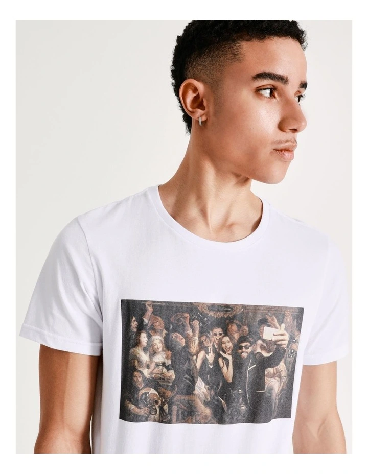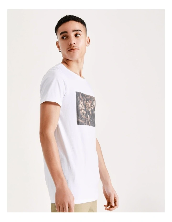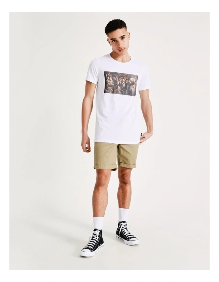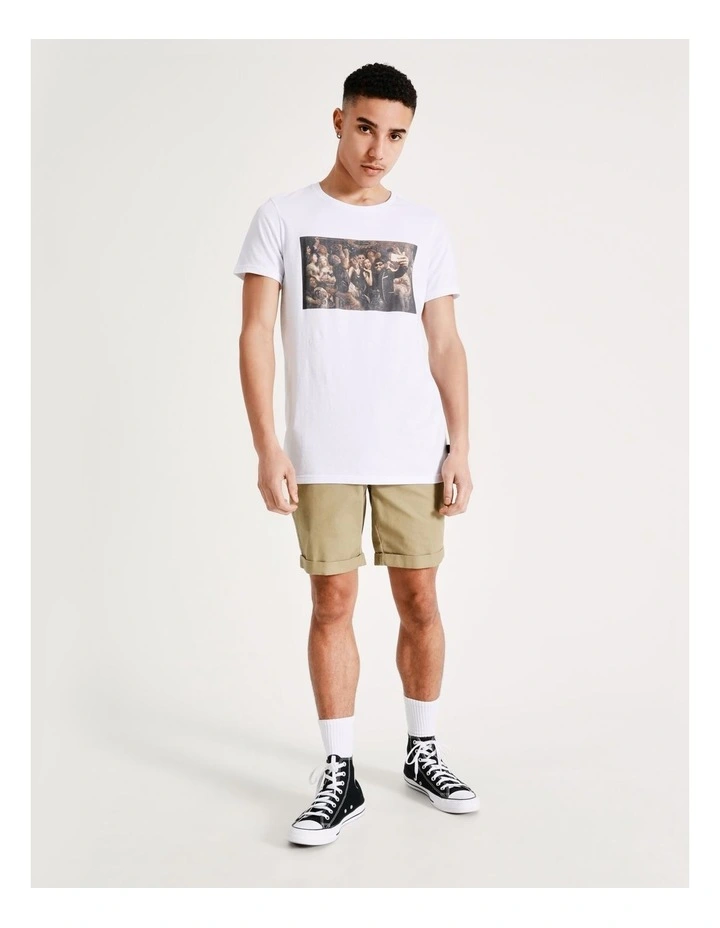 Elevate your look with a placement print tee. This tee has a regular fit, with a placement print on the chest. Wear it with denim shorts for an on-trend fit.