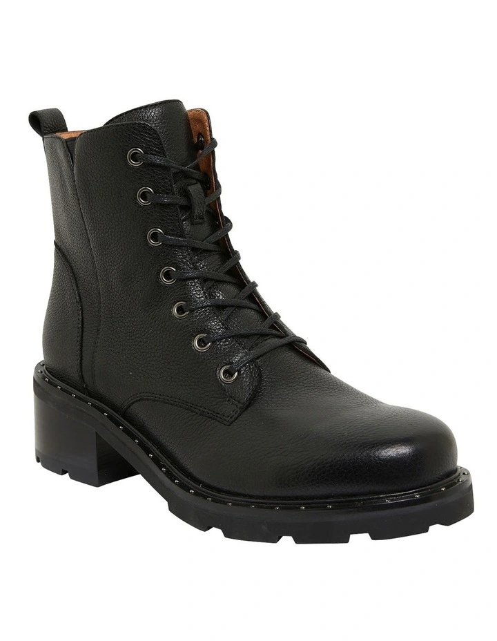 Reminiscent of traditional combat boots, NATIONAL spotlights the utilitarian trend. Crafted with a leather upper, a round toe and lace-up front, then set on a chunky block heel and finished with a coordinating leather lining. Choose them to give everyday looks a modern military twist.