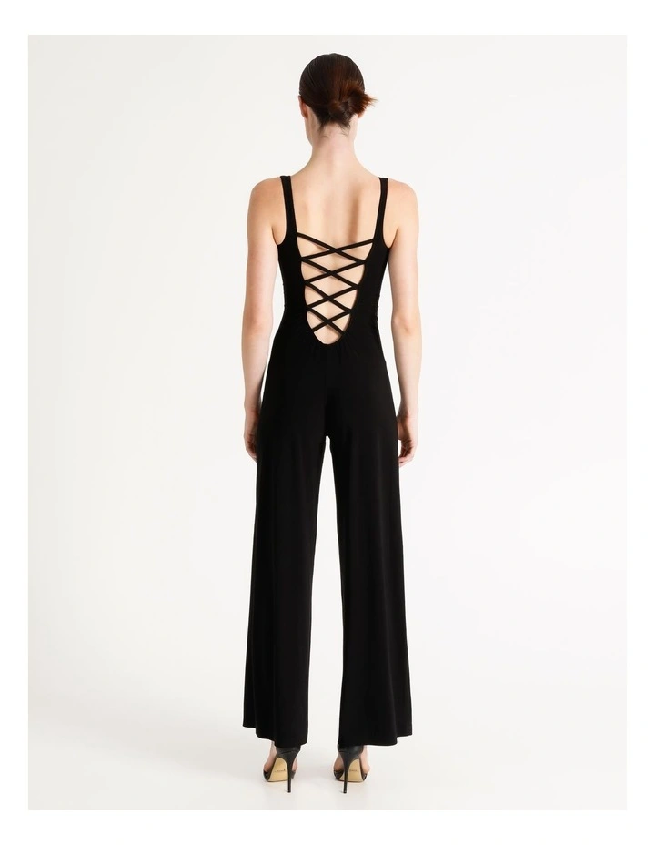 Like a modern version of the catsuit, our Sleeveless X Straight Jumpsuit is as streamlined as you can get. Made from our signature easy-care and wrinkle-free stretch jersey with a simple crewneck, slim hip and soft, wide trouser leg, and a lattice back.