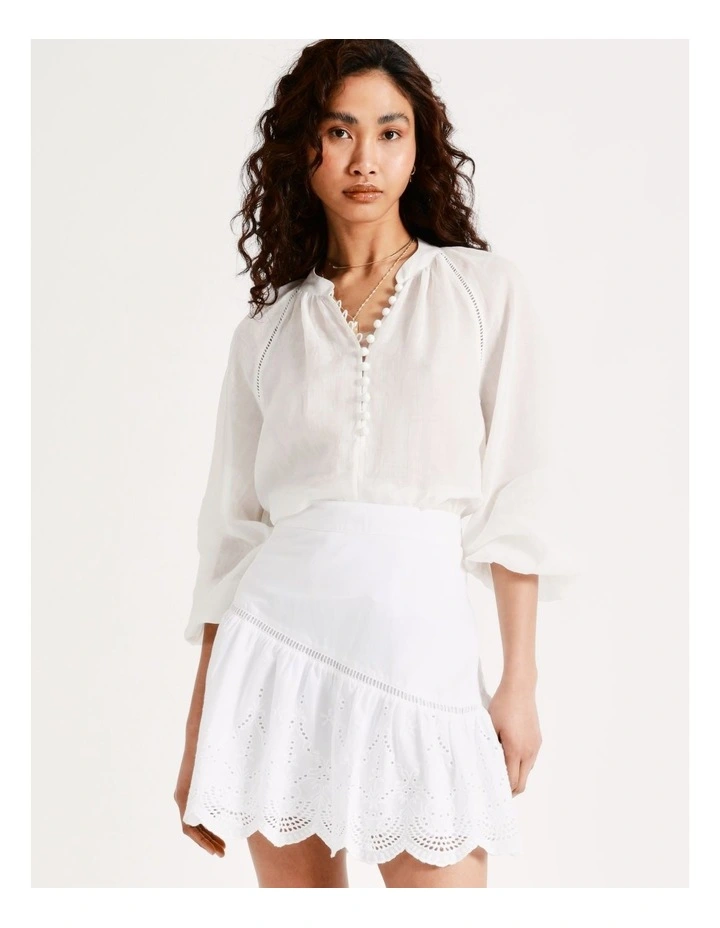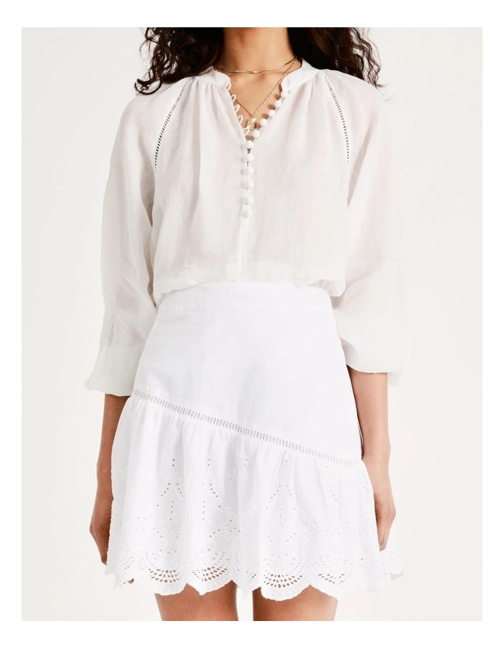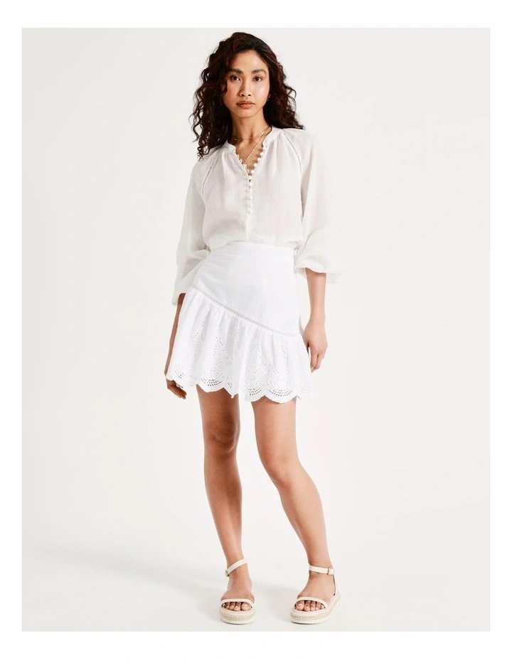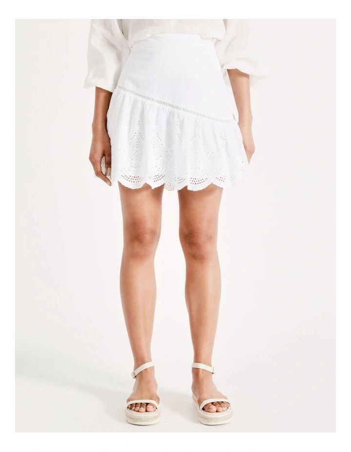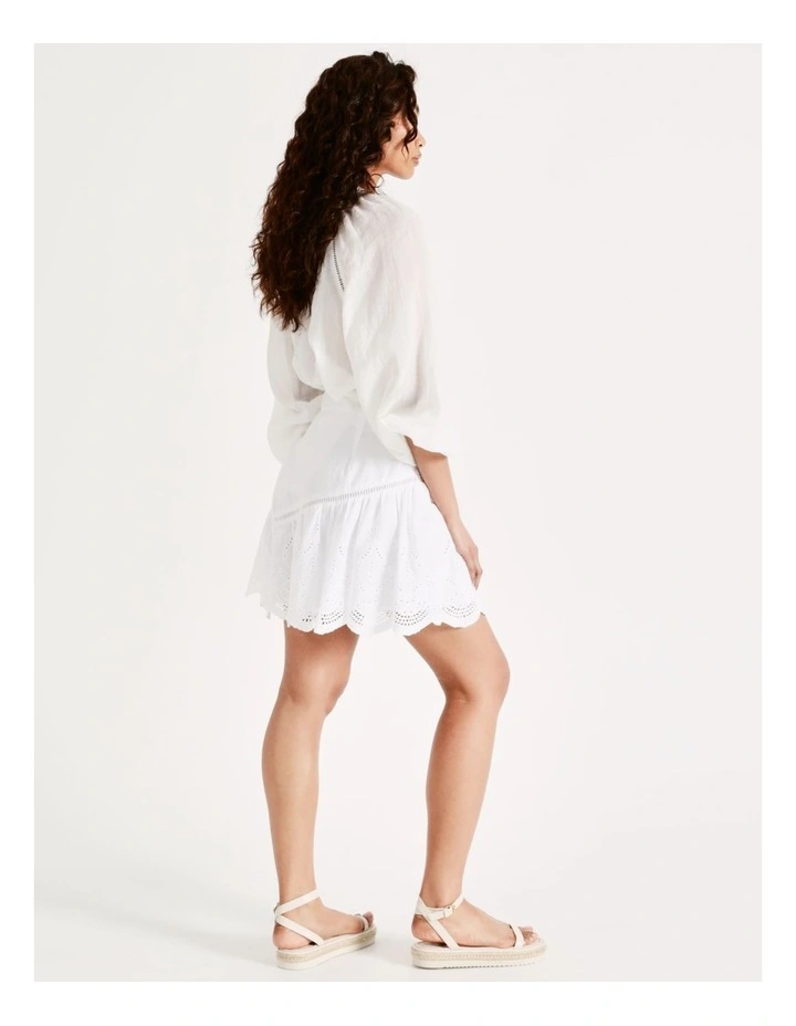 Style a chic silhouette with an on-trend mini skirt. This skirt has a lightweight and comfortable feel, made from a beautiful broderie anglaise fabric. Pair with your favourite heels for an elevated look.