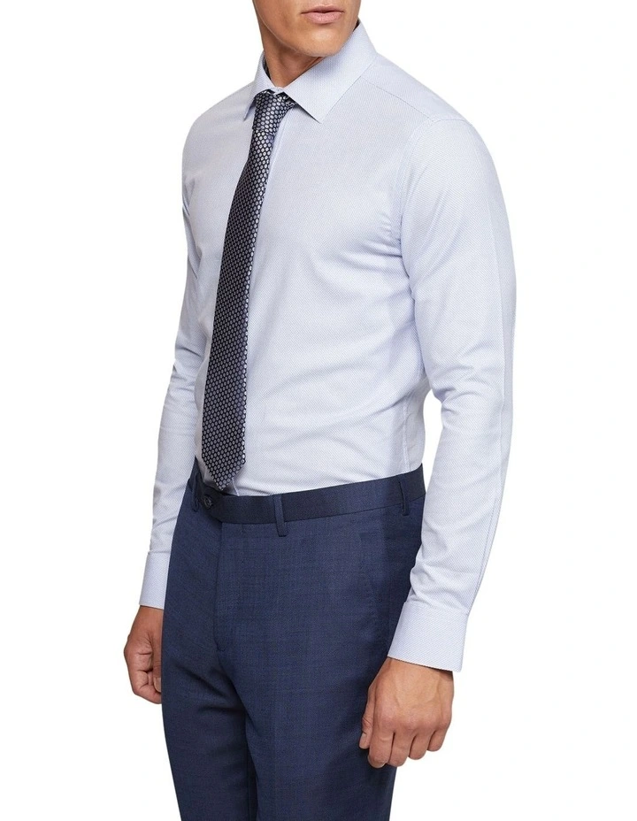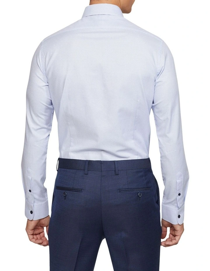 The Beckton Slim Fit Shirt is a timeless style for mens business wear. This shirt is cut in a modern slim profile and crafted from 100% organic cotton in a sky blue colourway. It features a small collar and single button cuffs. Team it with navy suiting and brown leather shoes for a modern business look.