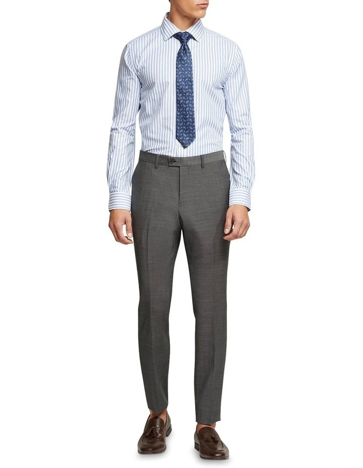 Take your professional look to the next level with the Beckton Self Striped Shirt. This slim fit shirt is crafted from 100% cotton with a dapper vertical stripe pattern. It features a small collar and single button cuffs. Wear it with a navy suiting and brown leather accessories for a flawless office look.