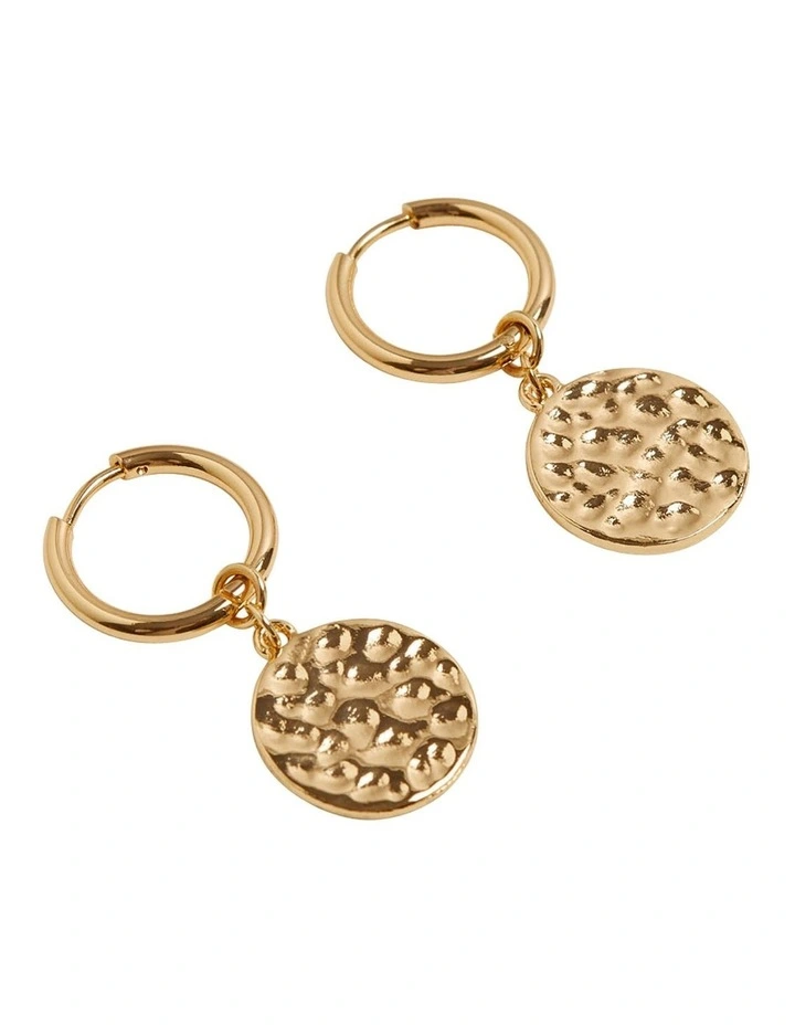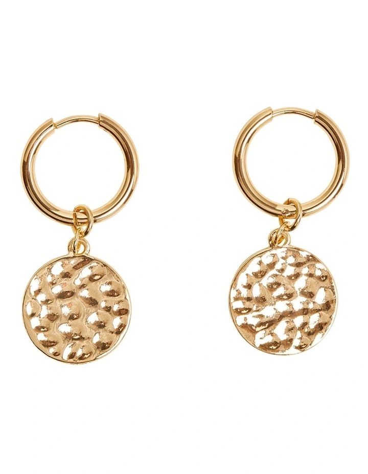 The Charlotte Mini Hoop Earrings are an effortless finishing touch for any occasion. These sleek earrings are crafted from a brass metal with a smooth finish in a light gold colourway. They have a small hoop and disc pendant with a worked metal feel.