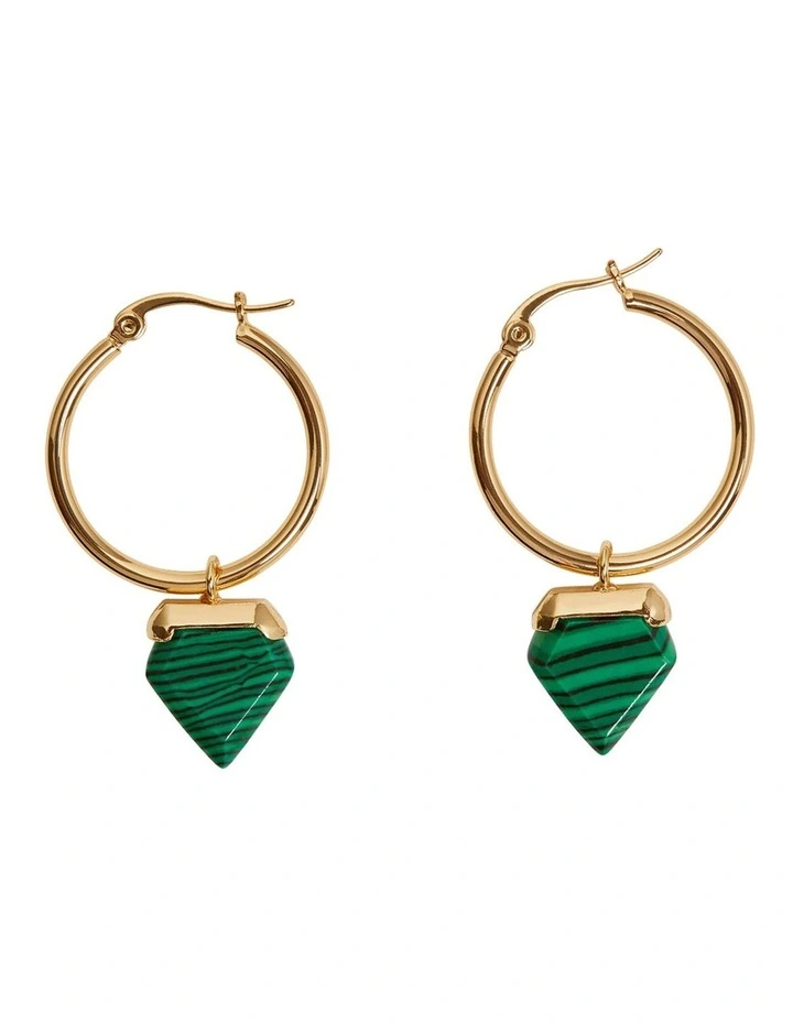 The Jenna Emerald Stone Hoop Earrings are an effortless finishing touch for any occasion. These cute earrings are crafted from a brass metal with a smooth finish in a light gold colourway. They have a small hoop with an emerald pendant for a splash of colour.