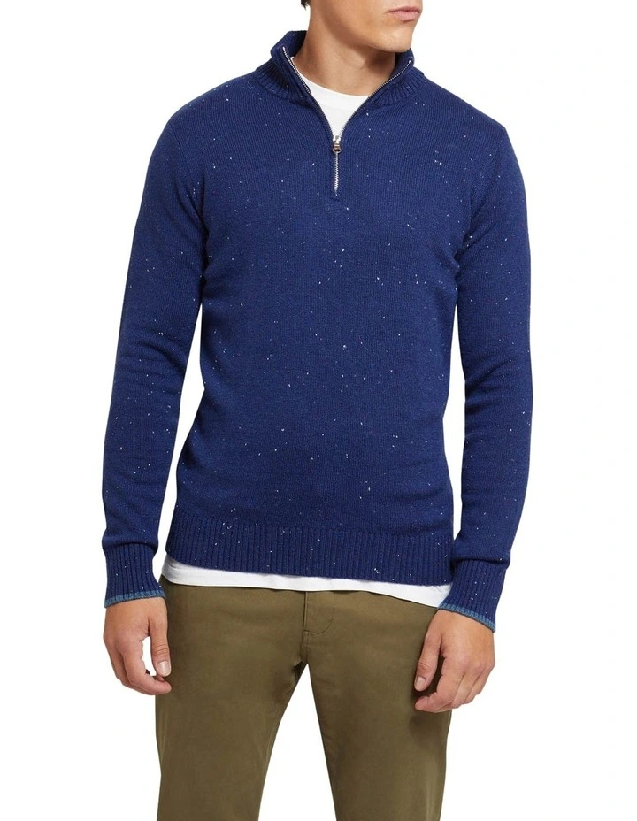 The Micky Donegal Zip Collar Knit is a timeless winter style. This mens knit is crafted from Donegal weave with subtle coloured specks. It is cut in a slim fit and features a suave zip collar with a high neckline and contrast cuff trims. Team with jeans and sneakers to complete the look.