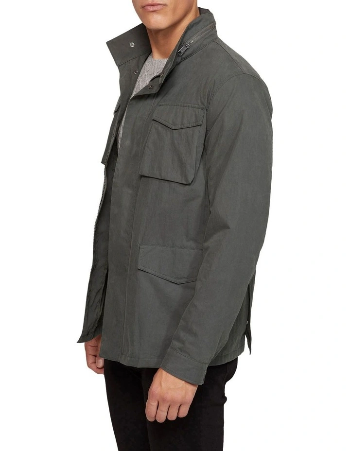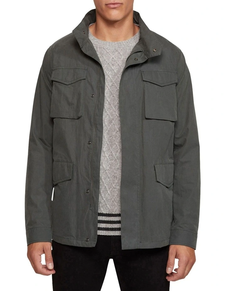 Functional and stylish, the Miles Water Repellent Jacket will be your go-to off-duty jacket. This regular-fit jacket is perfect for your weekend adventures with its cotton blend fabric that has a water-repellent finish. It features big chest and side patch pockets with velcro flaps, two internal pockets, a high neckline with pack-away hood, zip and press stud front and internal lining. Team it with chinos and sneakers for easy weekend style.
