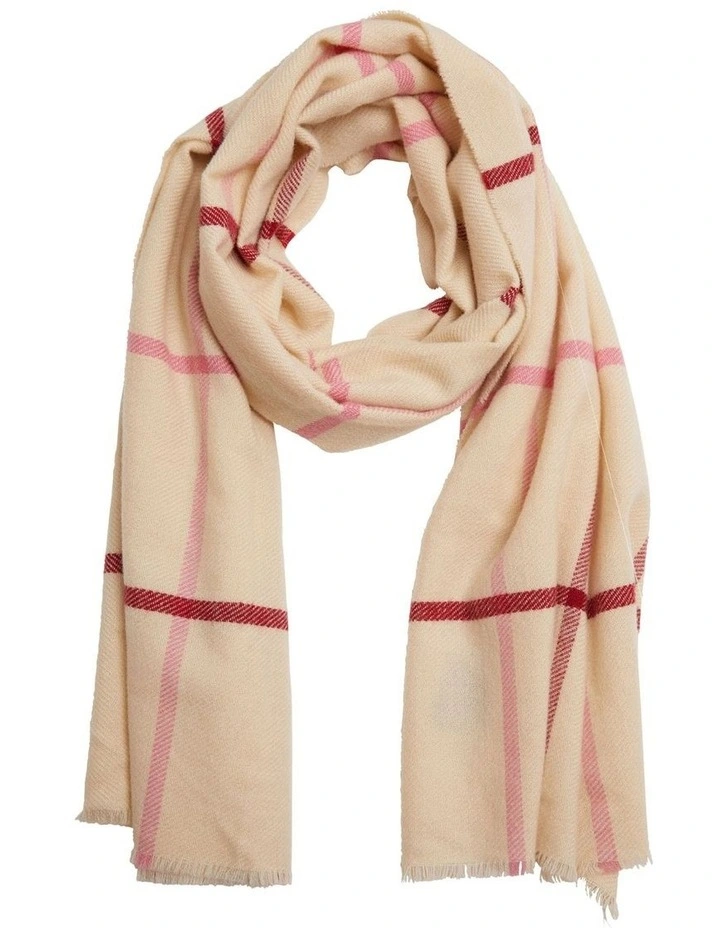 Rug up in style this winter with the Mina Woven Check Scarf. This cute and cosy scarf is crafted from a soft woven fabric in a natural spice colourway with a check pattern with a twisted end fringe.