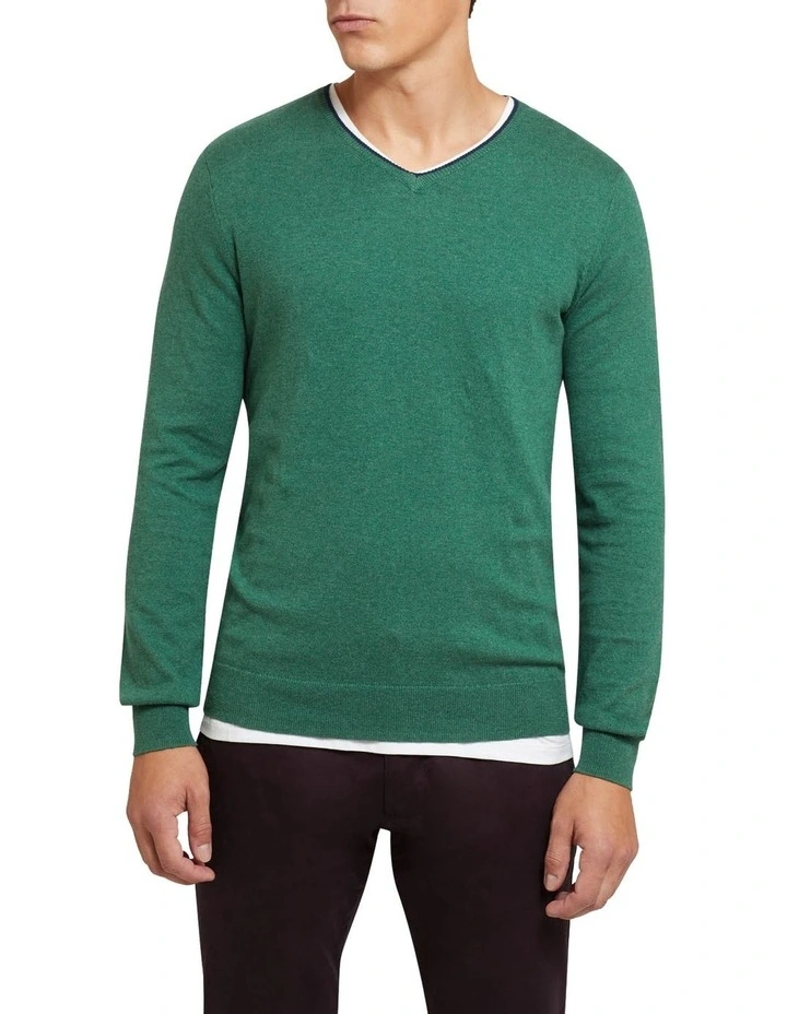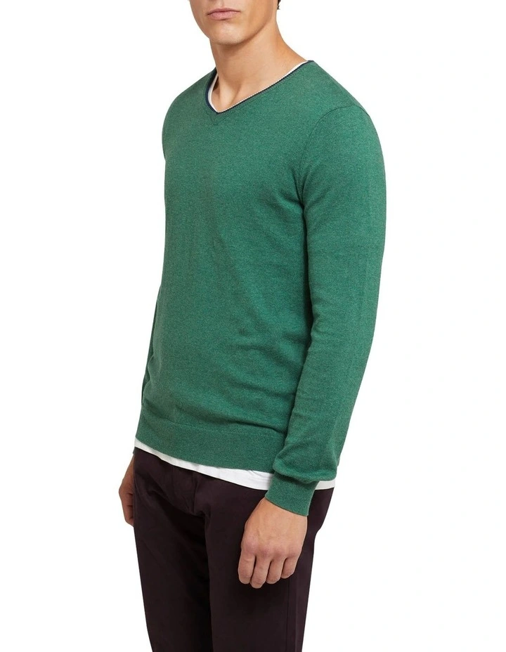 The Perry Tipping V-Neck Cashmere Blend Pullover is a versatile and comfortable choice. This classic V-neck jumper is made from a super soft cotton and cashmere blend and features a contrast stripe on the neckline and ribbed trims. Wear it with chinos and sneakers for a smart yet relaxed look.