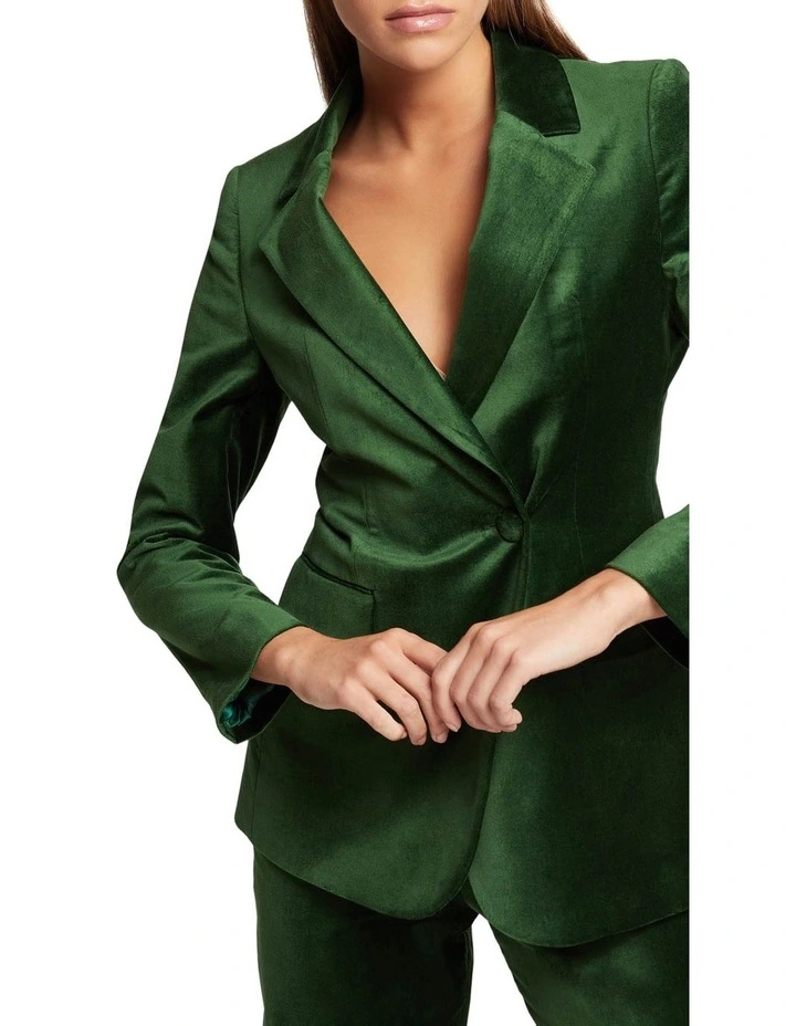 Timeless chic, the Raffi Velvet Jacket brings the 70s into the now. This slim fit womens jacket gathers at the waist with a single button for a flattering fit. It features slim lapels, side pockets, and an internal pocket. Wear it with the matching Lauren Velvet Trousers for effortless style.