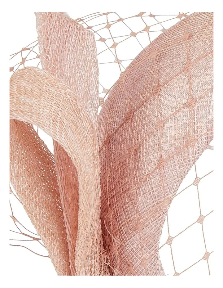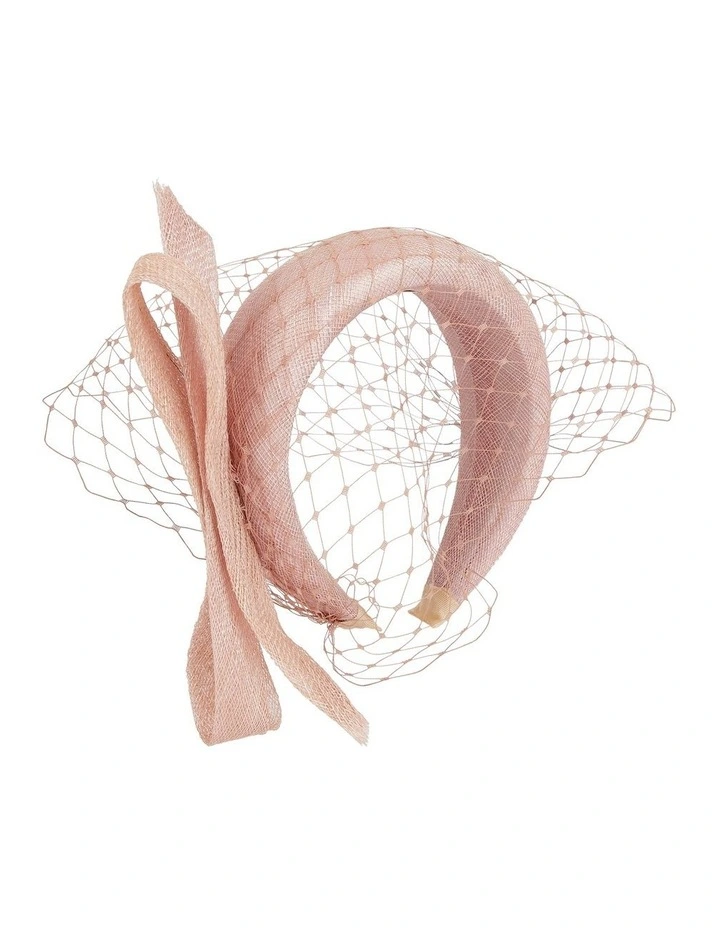 An easy to wear padded sinamay headband with side bow featuring tulle veiling. The perfect finishing touch to your race day look.