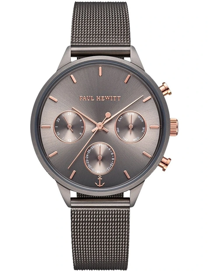 The PAUL HEWITTEVERPULSE ladies watch is proof that precision and style can go hand in handwith uncompromising harmony. With iconic grey metallic details and a matchingmesh band, this timepiece embodies an energetic, casual and outgoing stylethats as diverse as your life itself.