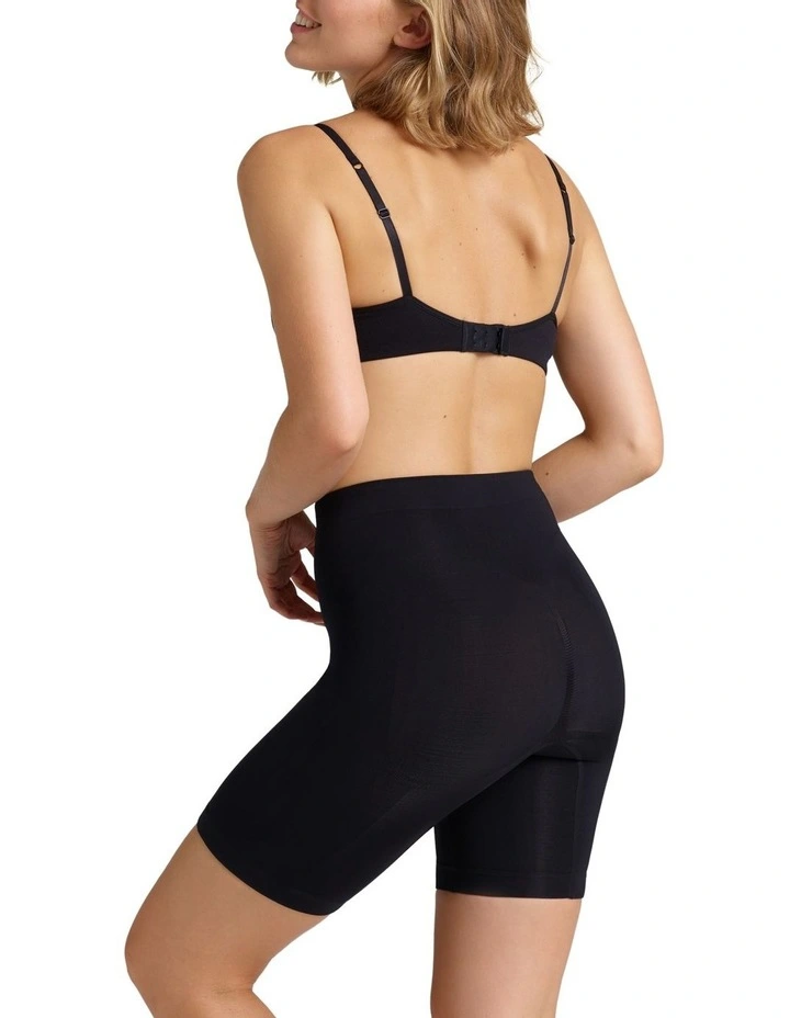 Ambra Killer Figure Power Lite Thigh Shaper Short provides light and powerful support that flattens the tummy and firms thighs with seamfree comfort. Cotton gusset and heat sealed labeling.