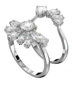 Swarovski Gema Cocktail Ring Mixed Cuts Flower Rhodium Plated In White