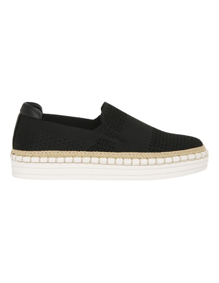 The Queen sneaker features a knitted upper with a sock like fit. Slip on style featuring espadrille stitch and 3cm platform. Â