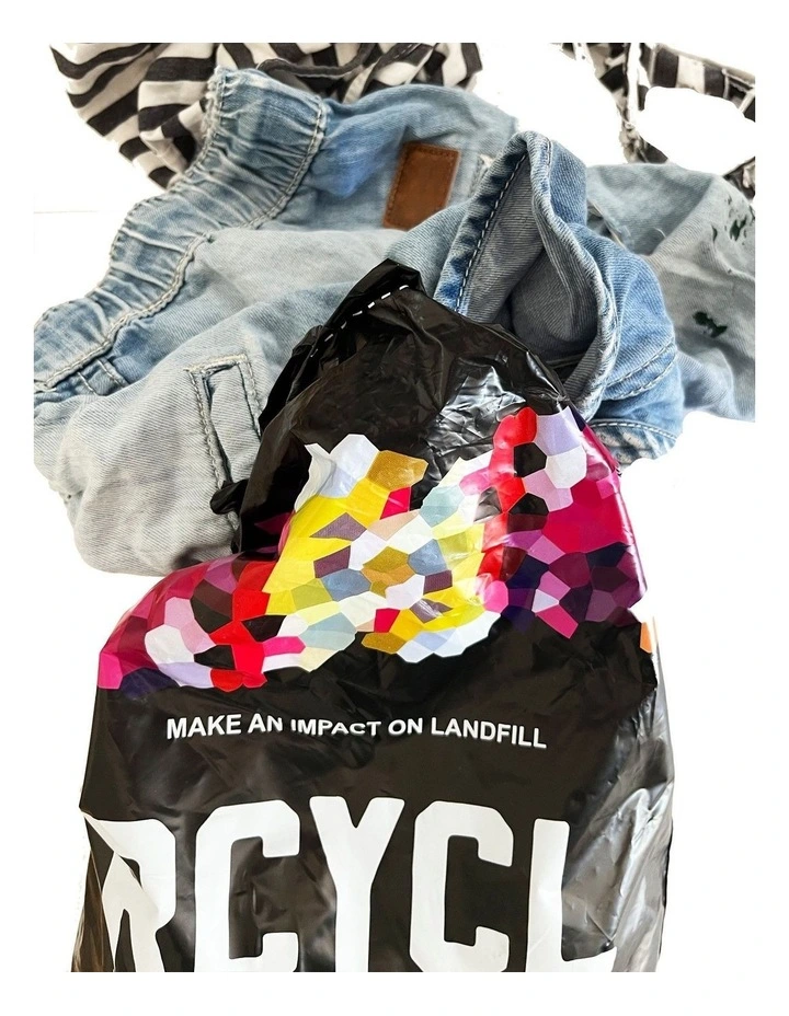 (On average the RCYCL return satchel can fit up to 6 items of clothing eg. tshirts and shorts but this will depend on the bulk of the items being discarded)