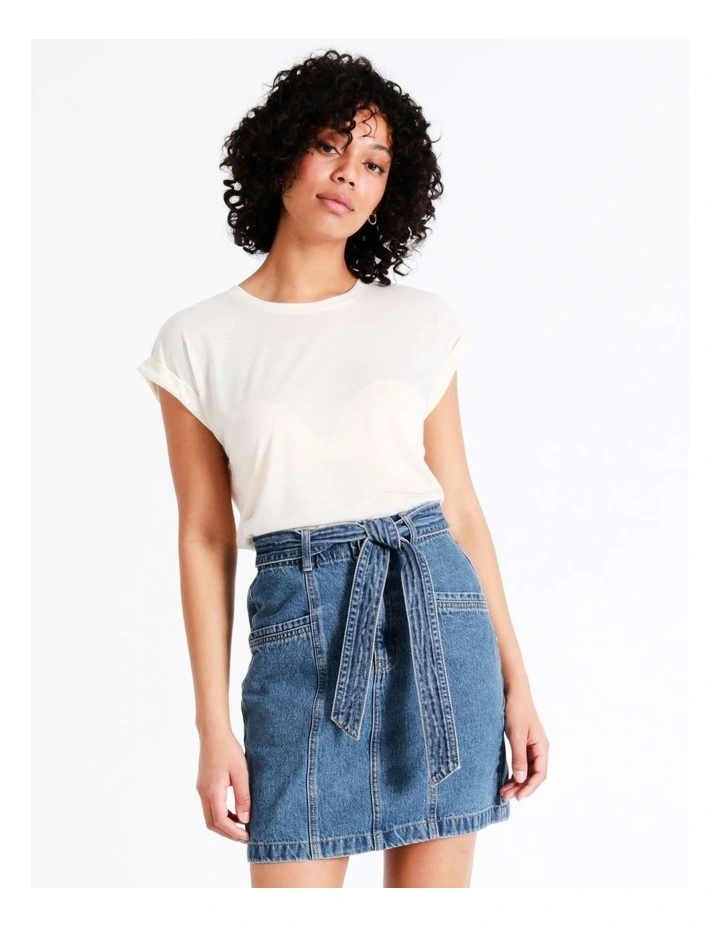 Grab Denim Recycled Blend Belted Denim Skirt in Pool Blue